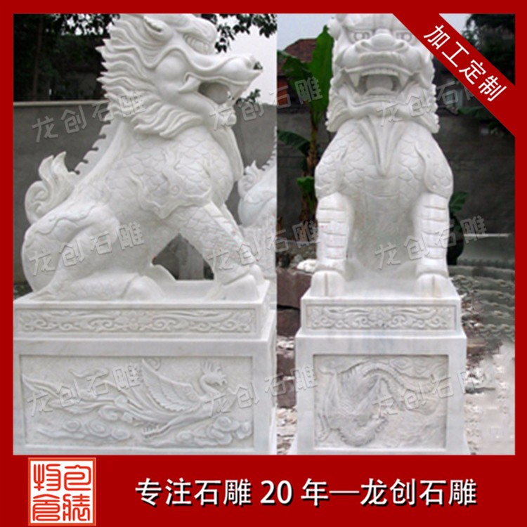 麒麟本身是具有集大成寓意的瑞獸,在民間被廣泛推崇。以麒麟為形態(tài)打造的石雕麒麟,可用于造景、點(diǎn)綴空間、祈福、轉(zhuǎn)運(yùn)等等。漢白玉制作的麒麟石雕,不僅可以實(shí)現(xiàn)麒麟的美好寓意,而且在開(kāi)光之后,更具有鎮(zhèn)宅、化煞、祈福、招財(cái)?shù)撵`力。所以,一對(duì)麒麟石雕既可以放置在商業(yè)大樓正門,也可以擺放在住宅區(qū)、別墅區(qū)的正門。風(fēng)景區(qū)、陵園區(qū)、寺院道觀等,擺放麒麟可以帶來(lái)吉祥寓意的風(fēng)水作用,保佑來(lái)玩的人群,鎮(zhèn)宅辟邪。漢白玉石雕麒麟開(kāi)光,可以以日月光洗禮,吸收日月精華來(lái)開(kāi)啟麒麟石雕的靈性,也可以請(qǐng)寺廟大師念經(jīng)開(kāi)光。