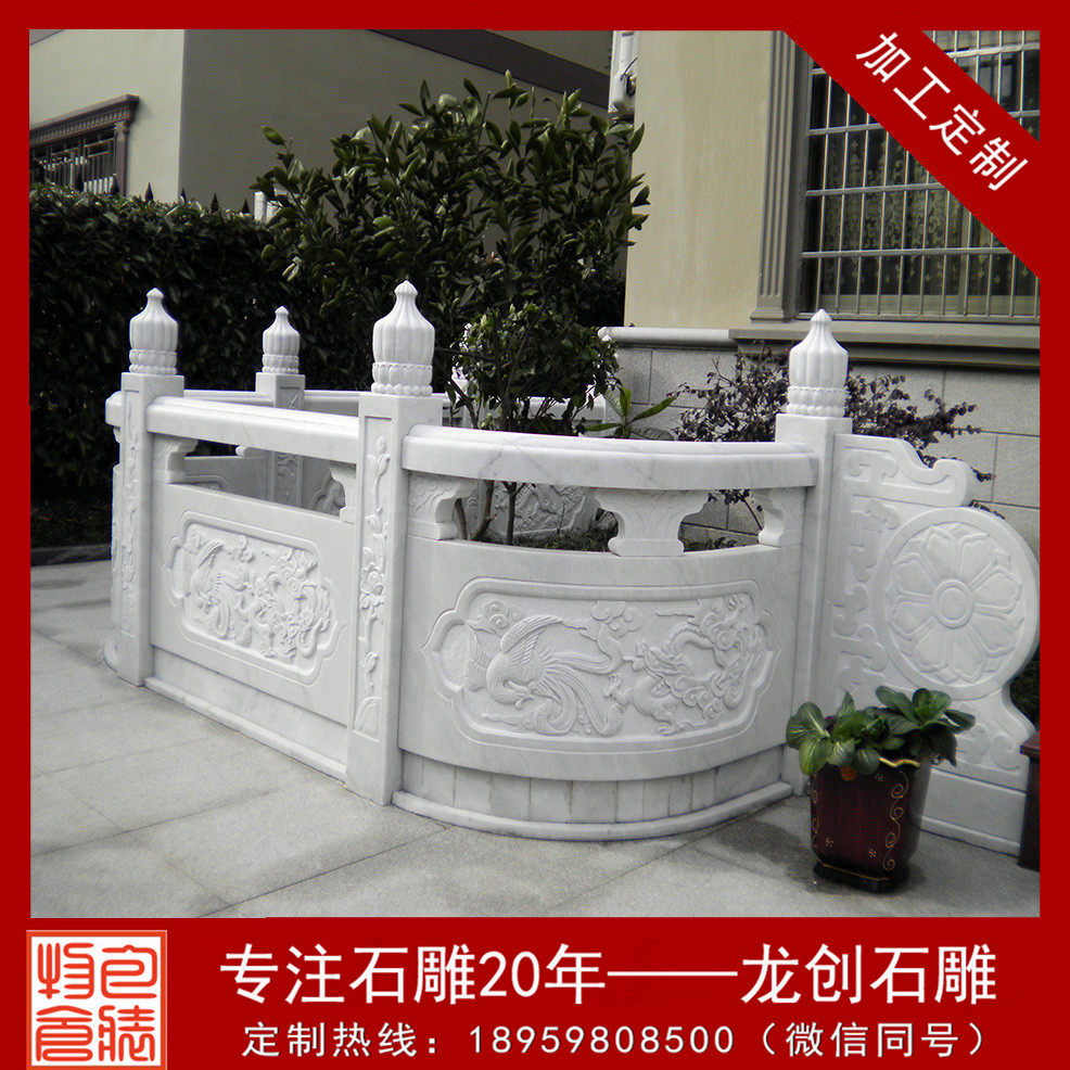 漢白玉石欄桿的制造安裝工藝是先人留下的寶貴財富,許多工藝的口訣都是工匠在操作中形成了自己的習(xí)氣,并一代代口傳親授,薪火相傳。漢白玉石欄桿具有很強(qiáng)的表現(xiàn)力,可雕刻出各種古典式樣的圖案。有著時尚、漂亮、環(huán)保、抗老化、不變形的功能優(yōu)點,可廣泛用于市政、水利、公園、交通橋梁等護(hù)欄工程。